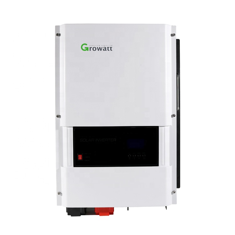 انفرتر Growatt بقدرة 5 كيلو واط، يعمل خارج الشبكة بنظام موجة نقية وتقسيم الطور 120 فولت، مثالي للاستخدام المنزلي مع كفاءة تحويل عالية وهيكل مقاوم للعوامل الجوية.